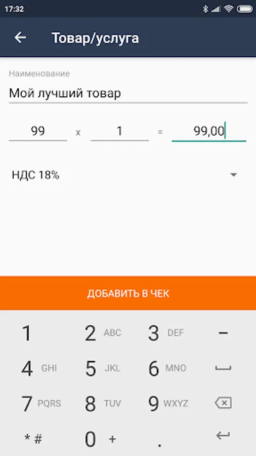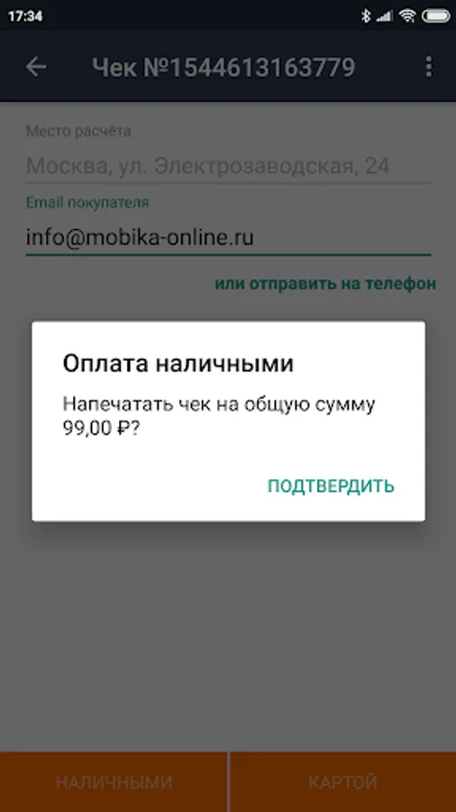 Free application and cloud service for online cash registers. Works on 54-FZ.