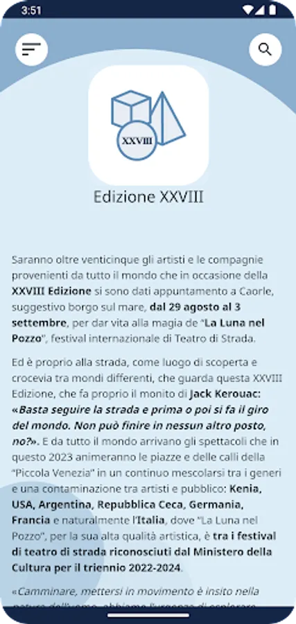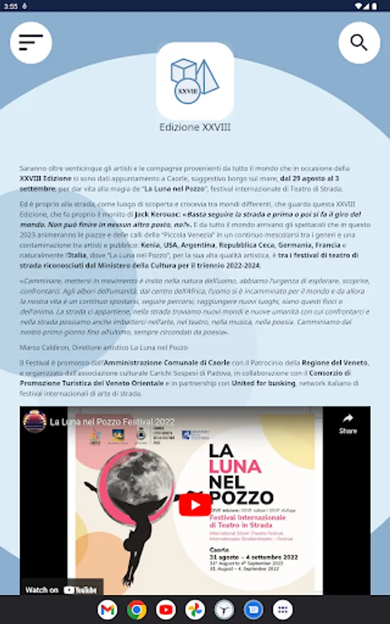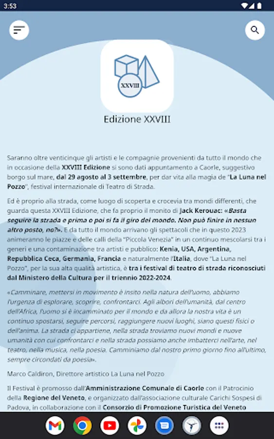 Download the app and start immediately to fully experience the La Luna nel Pozzo Festival. With the official app you can compose your calendar with the shows you don't want to miss, find the artists for the village of Caorle and discover the shows on stage.
