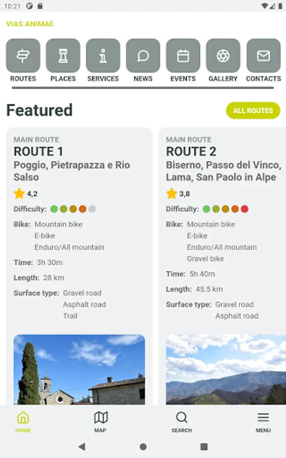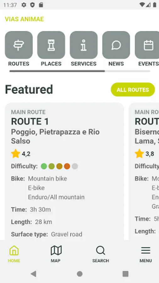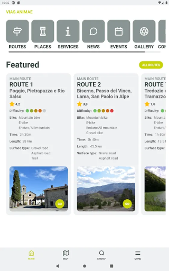The App accompanies you step by step along the 16 routes present, describing the way to follow, the difficulties and the duration...but it doesn't stop there!