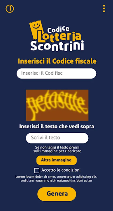 It is necessary to enter the tax code from which it will be possible to generate your receipt lottery code.