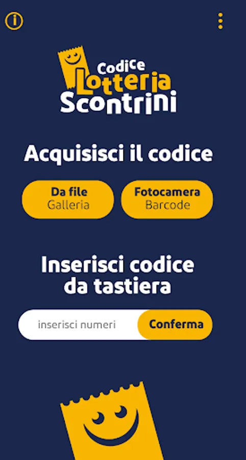 Important: The app allows you to store only one lottery code, if you request a new code the app overwrites the previous one.