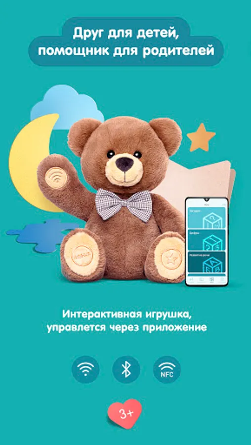 Choose an activity and decide how Clever Bear will keep your child busy - tell a fairy tale, call to wash, teach you how to count or share interesting facts. Learning and developing has never been so interesting!