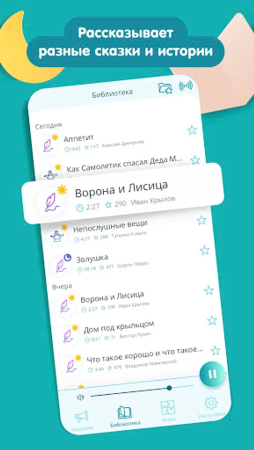 To access an expanded library and listen to new tales and stories every day, subscribe through the app in the "Settings" section.