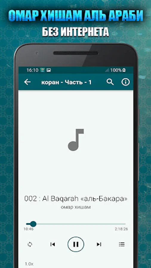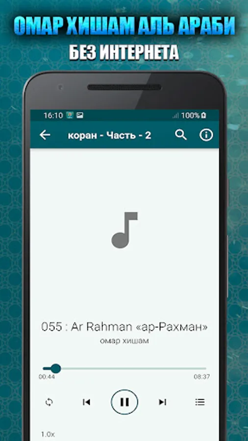 Wonderful Holy Quran app with omar hisham al arabi reader voice without internet