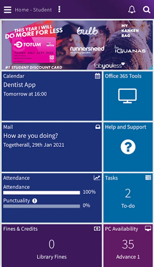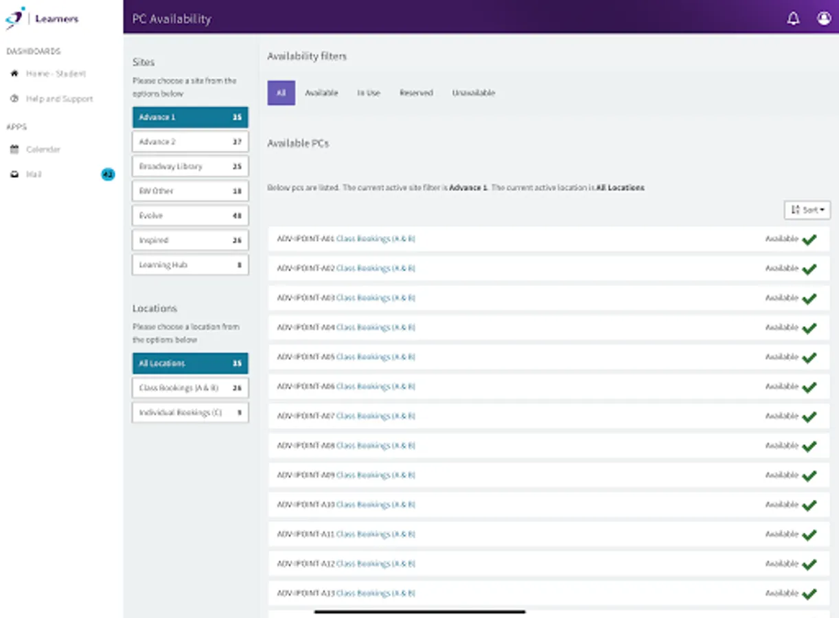 Access your timetable, find an available PC, check your progress and access loads more functions helping you to stay in control of your learning.