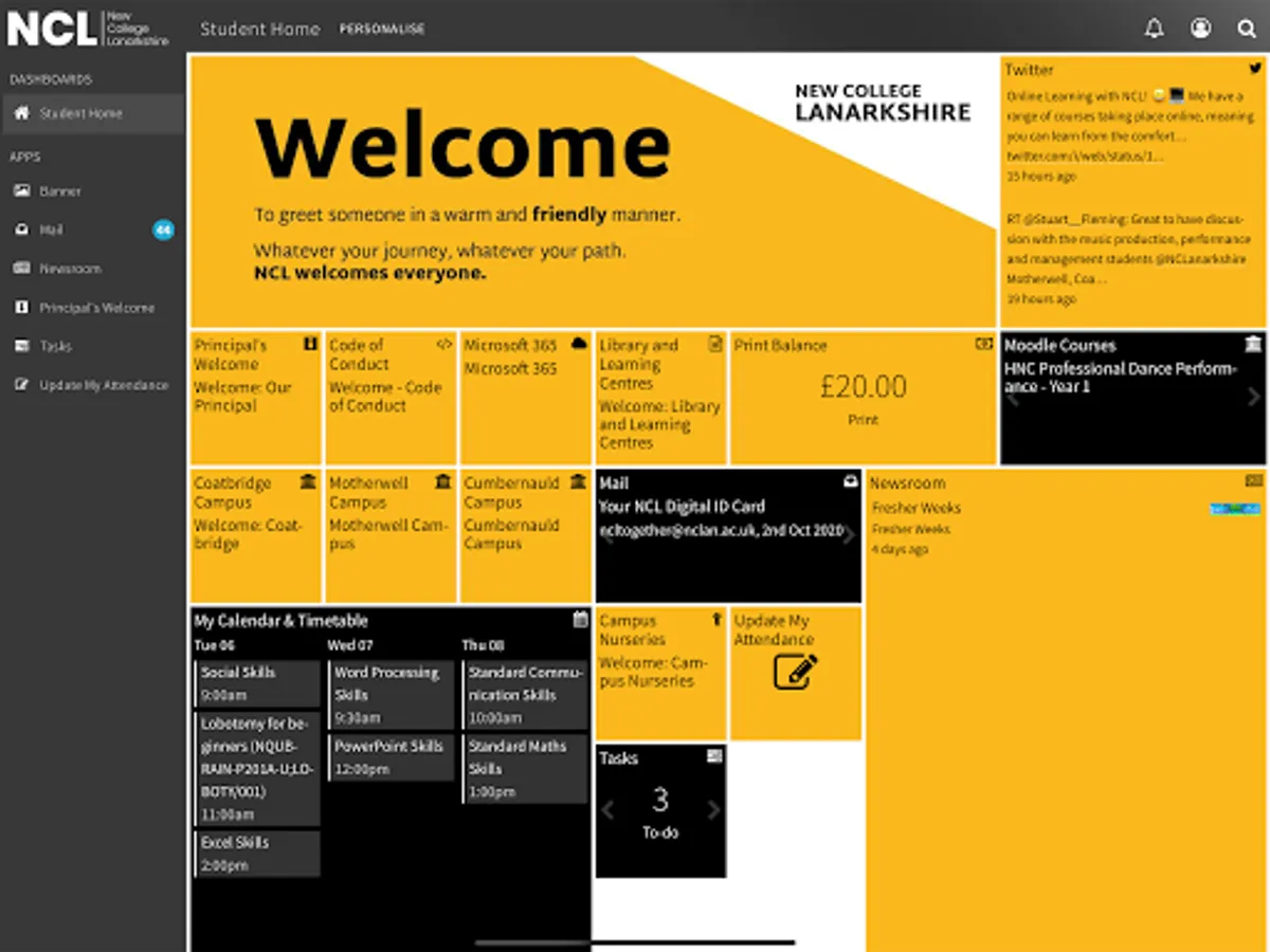 Everything you need for a great college experience at New College Lanarkshire. One app to access your emails, attendance, timetable and much more.