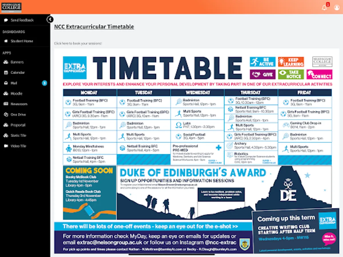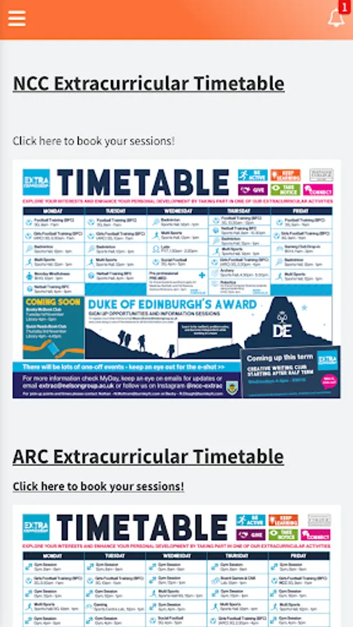 Extracurricular timetable
