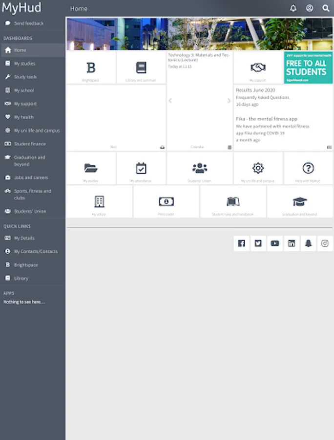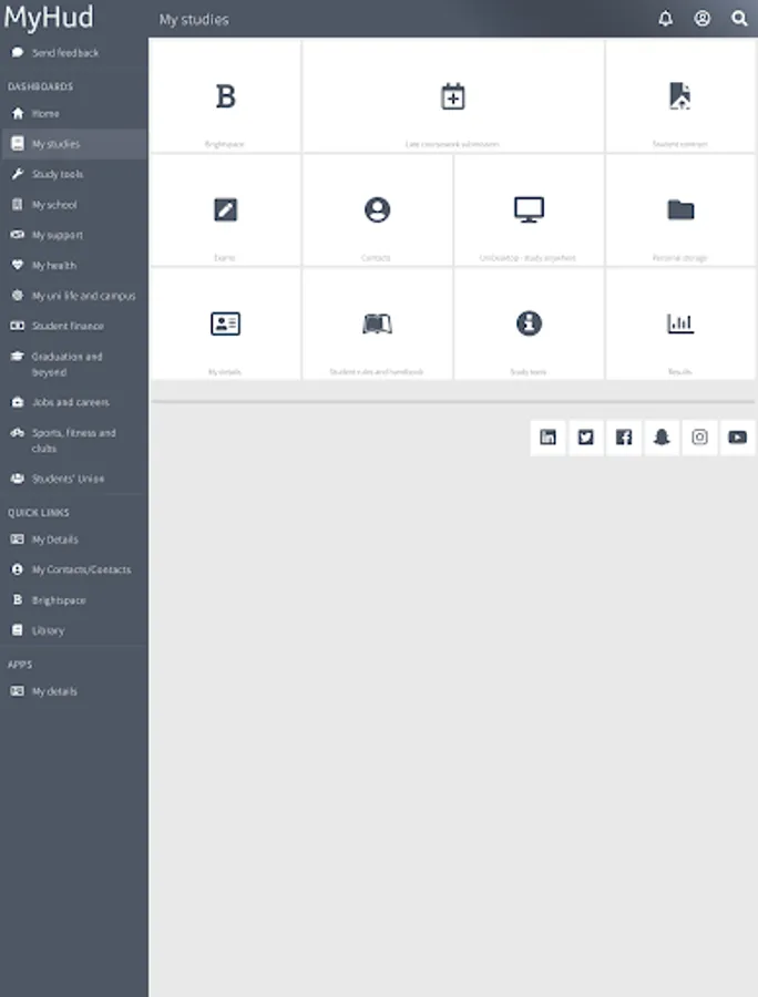 • My studies - access key guidance around your studies, including the Library, Academic Skills Tutors and IT support.