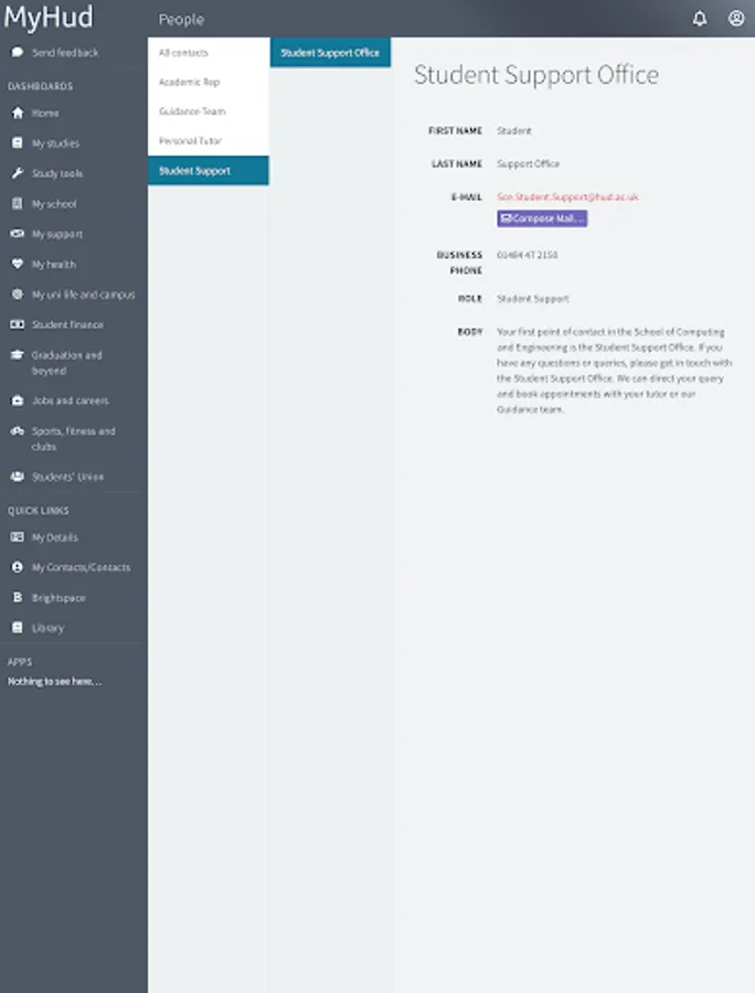 the University of Huddersfield. The MyHud app builds on your desktop experience, providing a simple and effective way of accessing: a range of support; your email; timetable; study resources and more.