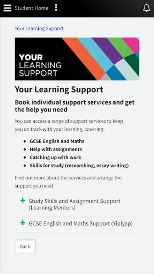 The app has everything you need in one place, such as access to vital information and alerts, all our support services and more. All designed to to enhance your learning and your education experience.