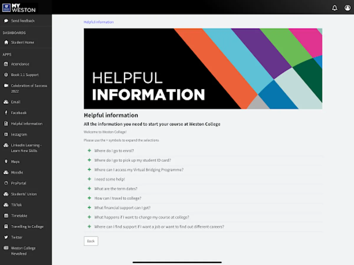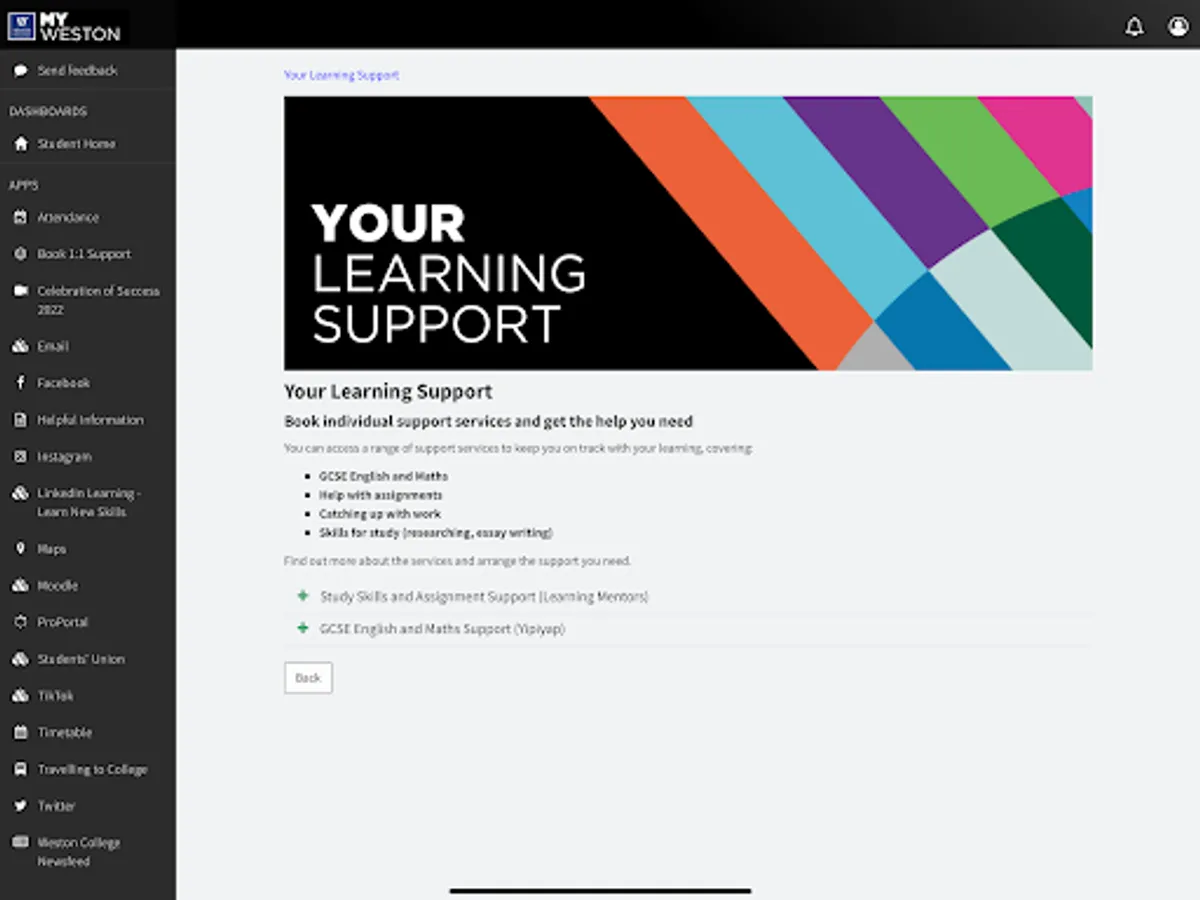 The MyWeston mobile app provides an easy-to use, personalised platform for you to manage everything you need to succeed at Weston College.