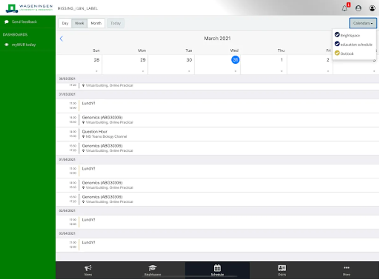 Need help? Go to https://wur-studentsupport.screenstepslive.com/ for instructions or call the Service Desk on +31 317488888. The app is updated in real time with the latest available information.