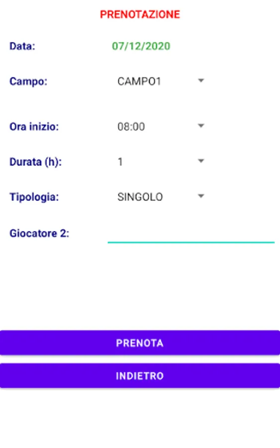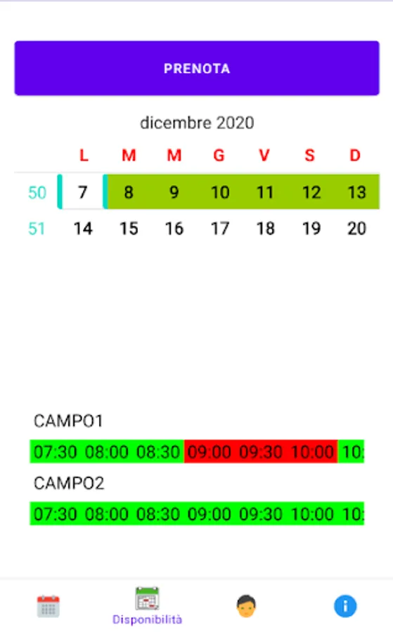 2) Possibility (only for registered users) to be able to book the desired field in the time you want among those available.