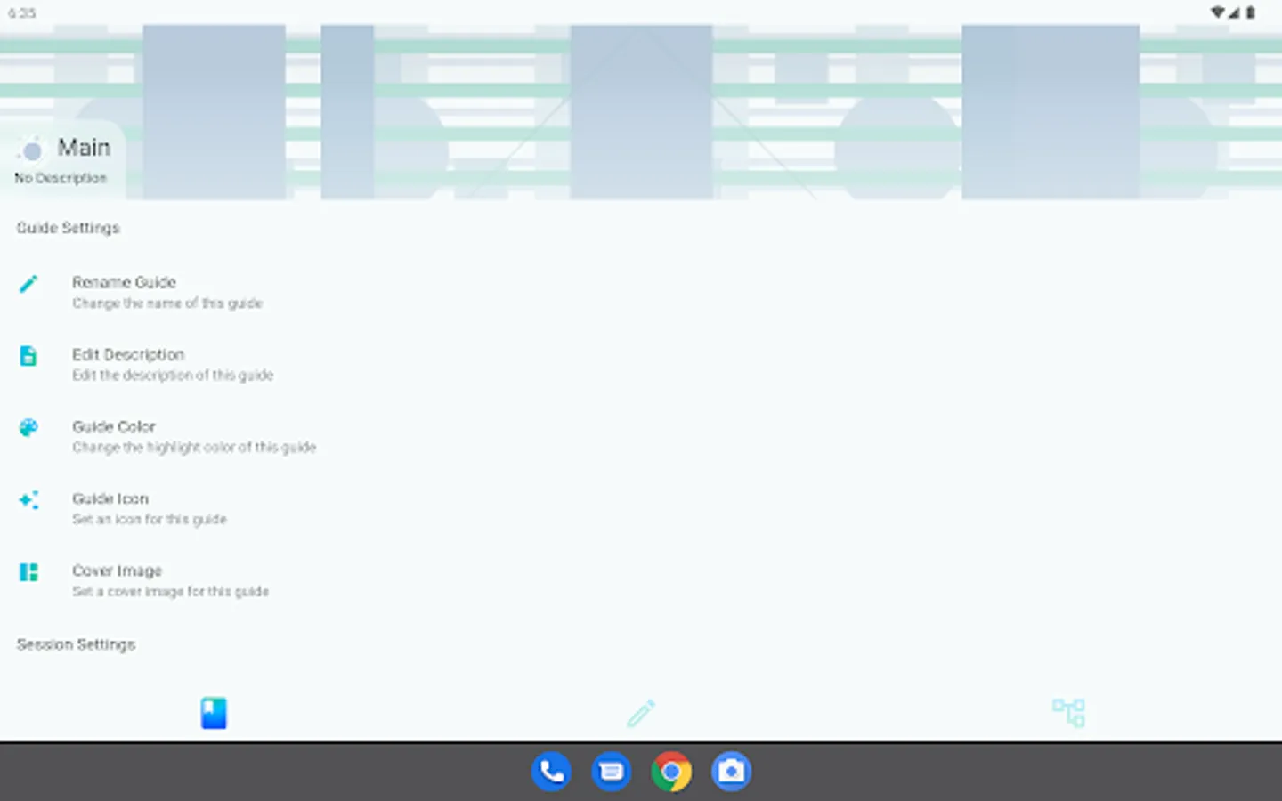 * Image: Select images accessible by your device to add to Guide pages, with settings that include color filter, alignment, and fit to screen.