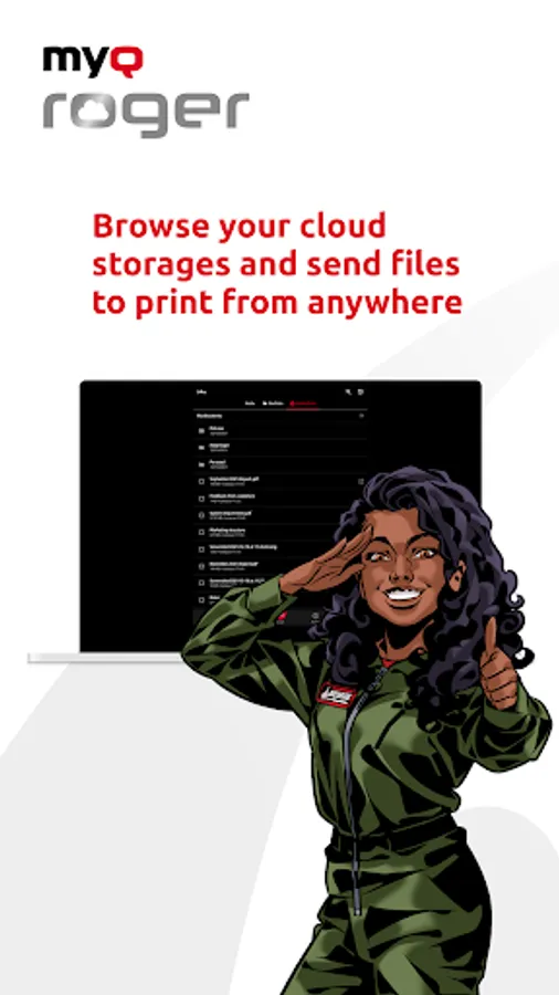 - How to print? Click “Print All” for queued documents or select any file from your mobile phone. Cloud print works the same way – browse your cloud folders directly in the MyQ Roger Chromebook app.