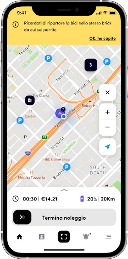 Return the vehicle to where you picked it up. Remember that you will not be able to end the rental if you are not in the right place and if you have not inserted the charging cable!
