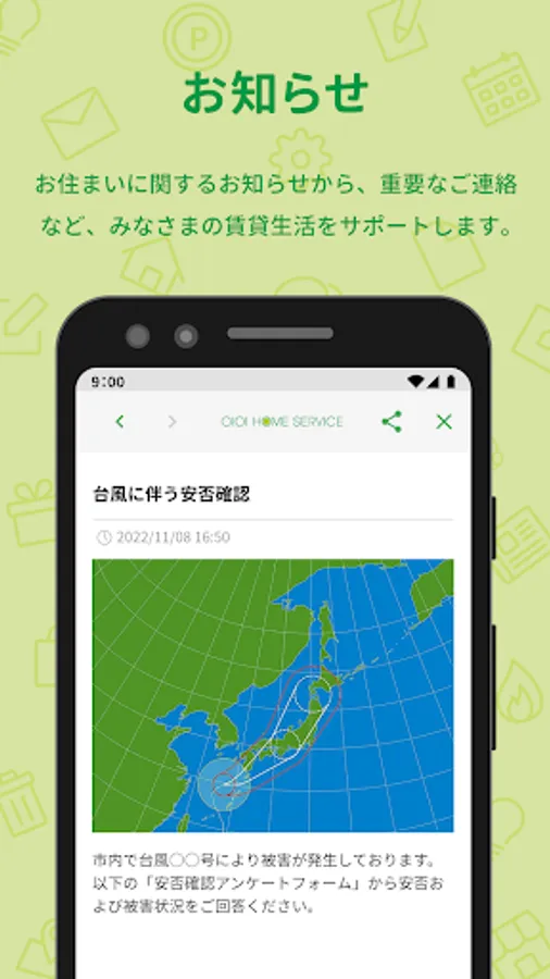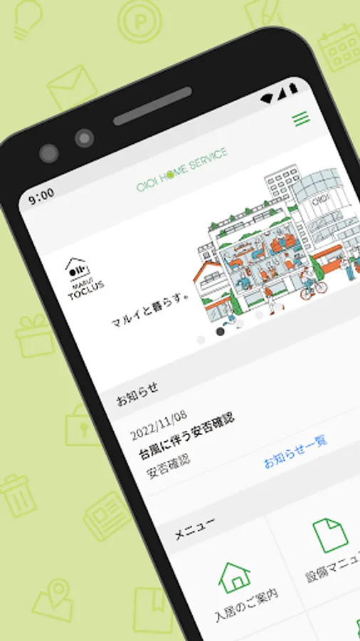 It is a dedicated app for tenants of apartments rented and managed by Marui Home Service Co., Ltd.