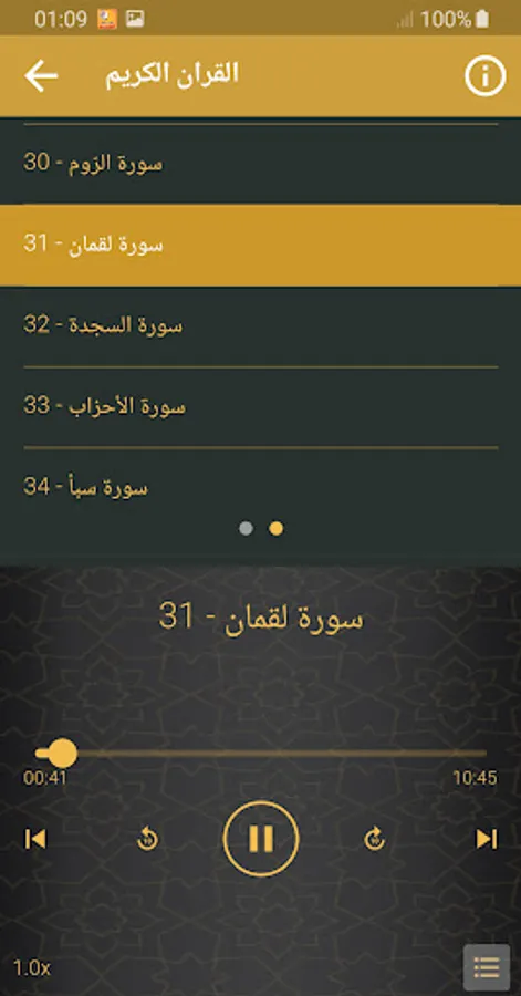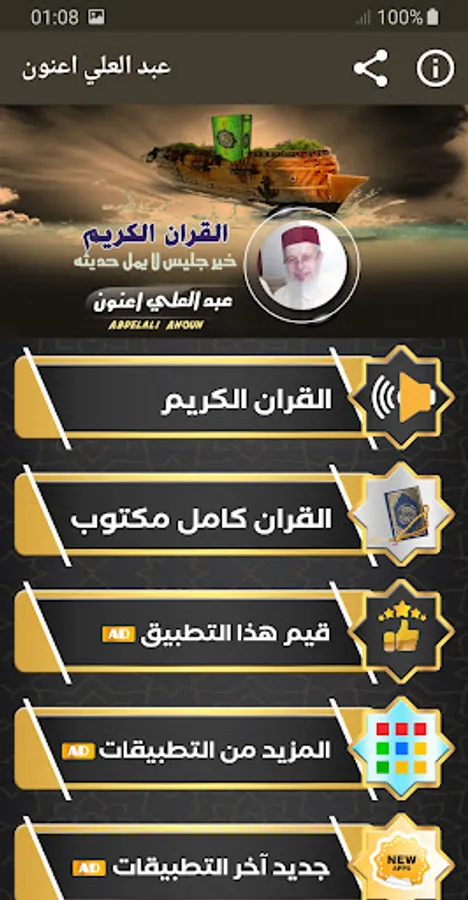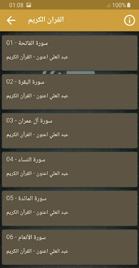 ◾️ A very wonderful application for the reciter Abd al-Ali Aanun that contains the entire Holy Qur’an with high audio quality
