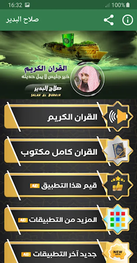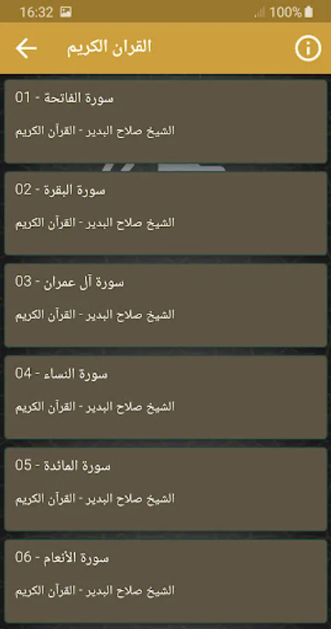 ◾️ A very wonderful application for the reciter Salah Al-Badir that contains the entire Holy Qur’an with high audio quality
