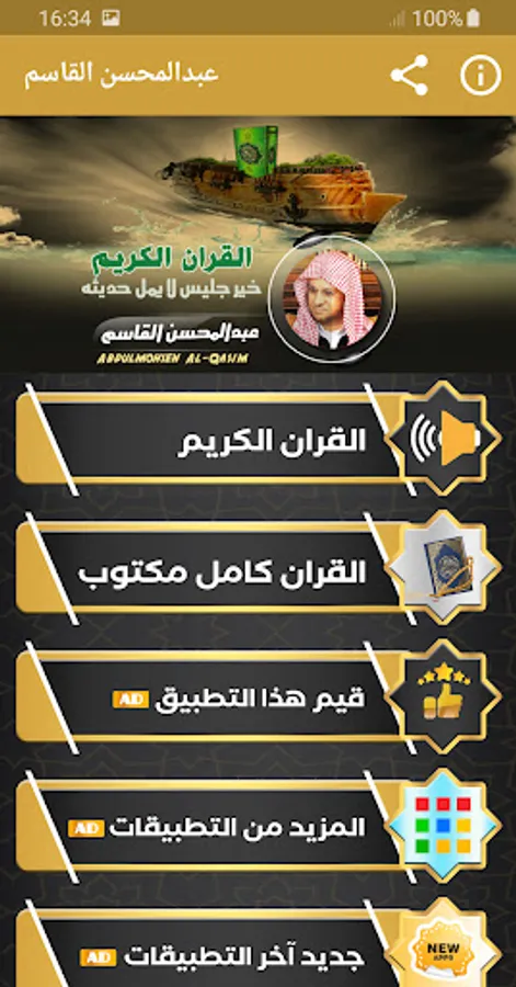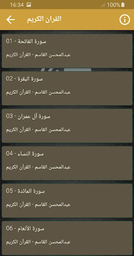 ◾️ A very wonderful application for the reciter Abdul Mohsen Al-Qasim that contains the entire Holy Qur’an with high audio quality