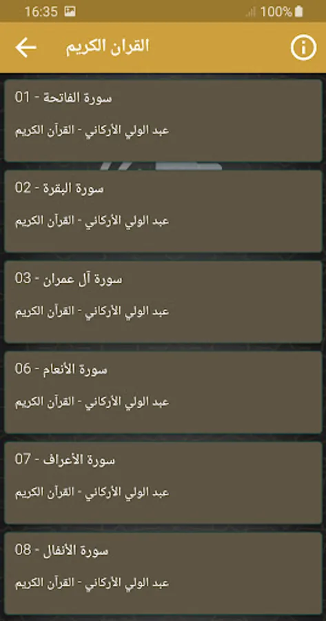 ◾️ A very wonderful application for the reader, Abdul Wali Al-Arkani, that contains the Noble Qur’an with high audio quality