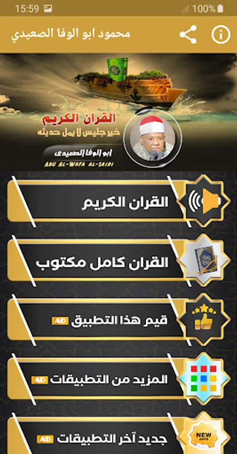 ◾️ A very wonderful application for the reciter Mahmoud Abu Al-Wafa Al-Saidi that contains rare recitations of the Holy Qur’an with high audio quality