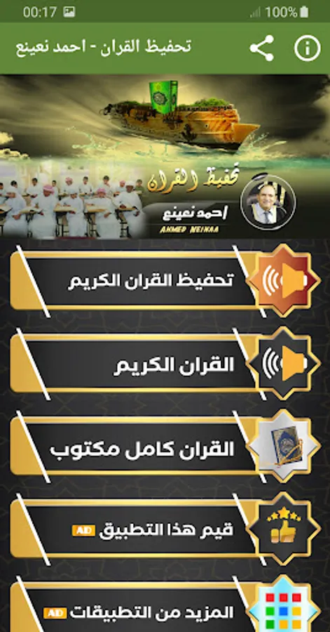 ◾️ A very wonderful application by Sheikh Ahmed Naina’ that contains the Mu’alem Mu’alem for the memorization of the Noble Qur’an that helps you memorize the Noble Qur’an easily with high sound quality