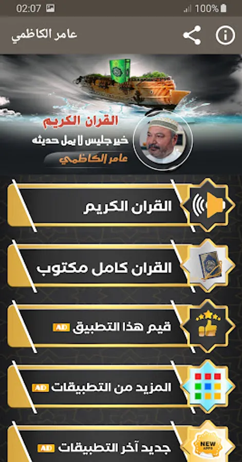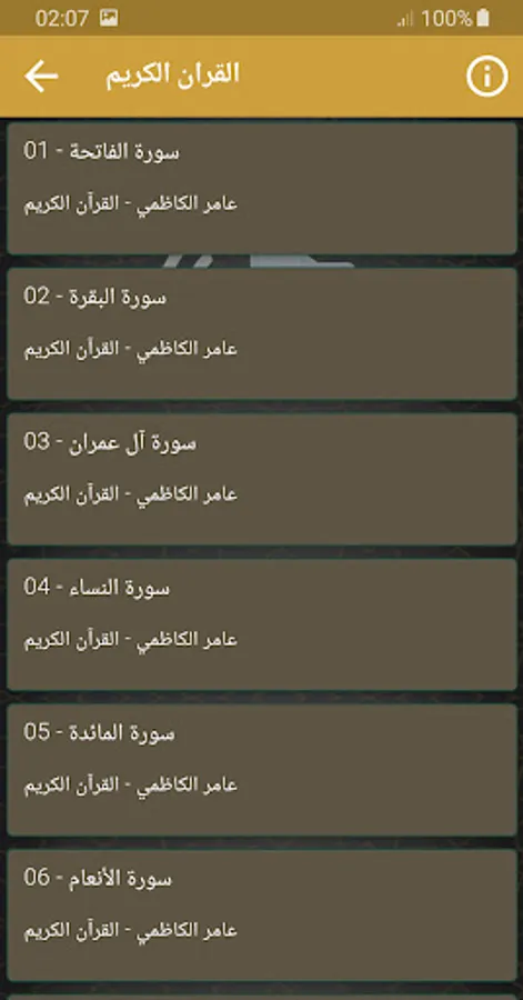 ◾️ A very wonderful application for the reciter Amer Al-Kazemi that contains the entire Holy Qur’an with high audio quality