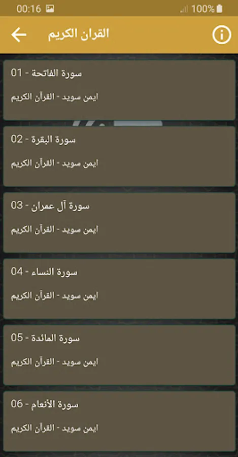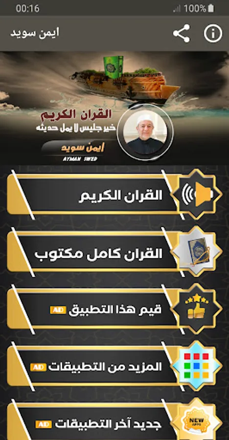 ◾️ A very wonderful application for the reader, Ayman Rushdi Suwaid, that contains the entire Holy Qur’an with high audio quality