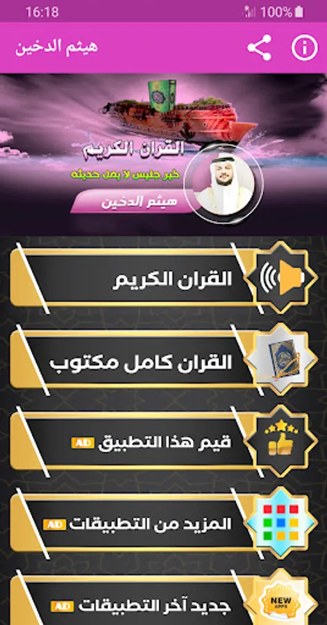 ◾️ A very wonderful application for the reciter Haitham Al-Dakhin, which contains the entire Holy Qur’an with high quality audio