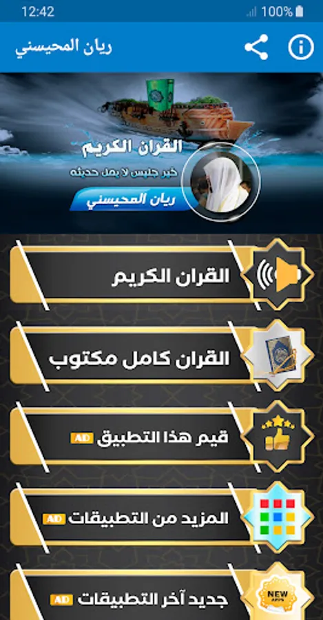 ◾️ A very wonderful application for the reader, Rayan Al-Muhaisni, that contains the Noble Qur’an with high quality audio