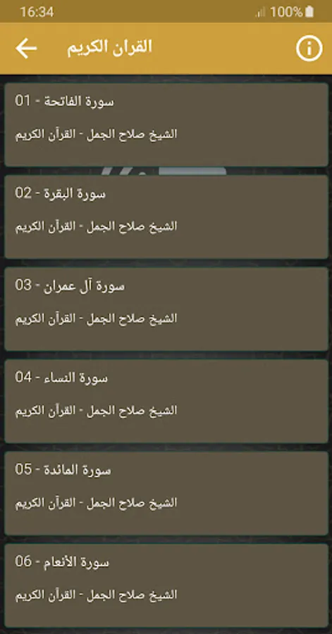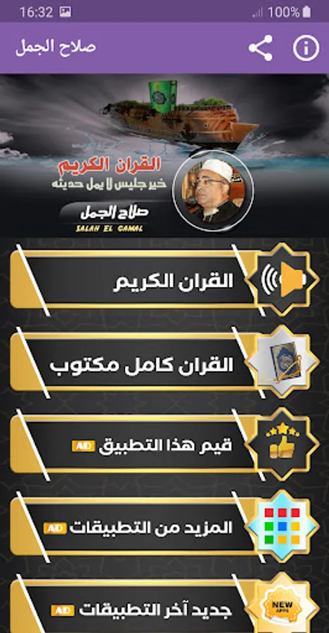 ◾️ A very wonderful application for the reciter Salah Al-Jamal that contains the entire Holy Qur’an with high quality audio