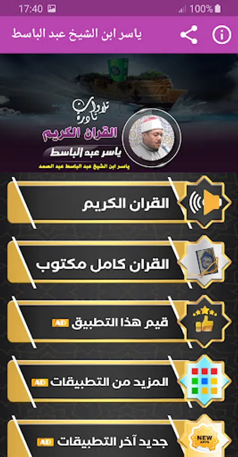 ◾️ A very wonderful application for the reader, Yasser Abdel Basit, that contains rare quality recitations of the Noble Qur’an with a beautiful voice by Sheikh Yasser Ibn Abdel Baset Abdel Samad