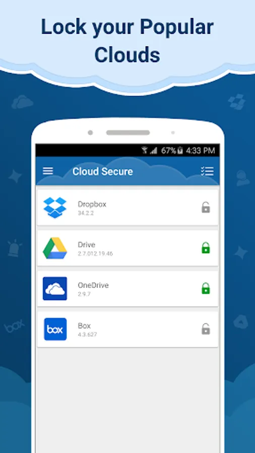Cloud Secure is a cloud drive protection application for android that will secure your cloud drive accounts on your device. Prevent prying eyes from peeping into your cloud storage account which holds all your valued documents, photos, videos and important or confidential files and archives.