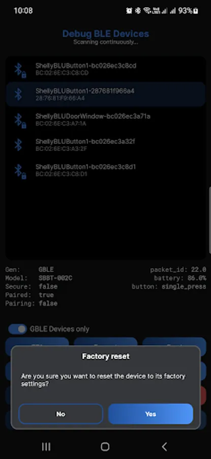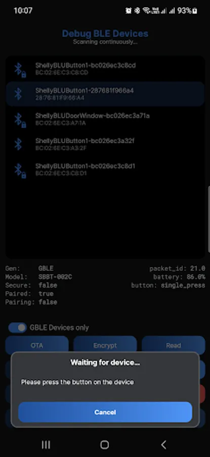 This is an engineering app for testing the communication with the Shelly BLE Devices, a.k.a. BTHome implementations.