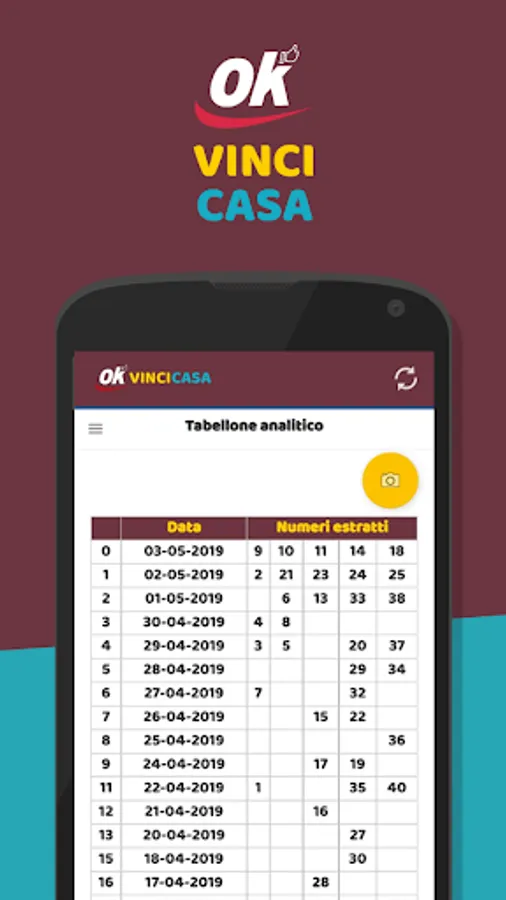 The analytical scoreboard of the 40 numbers keeps track of the last time a number was drawn and its position in the VinciCasa game