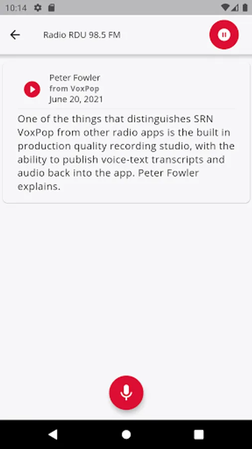 SRN VoxPop is your interactive mobile connection to the Student Radio Network: 95 bFM, Radio Control 99.4FM, Radio Active 88.6FM, RDU 98.5FM and Radio One 91FM. Browse the latest content, interact via an inbuilt recording studio, listen live and more. With thanks to NZ on Air.