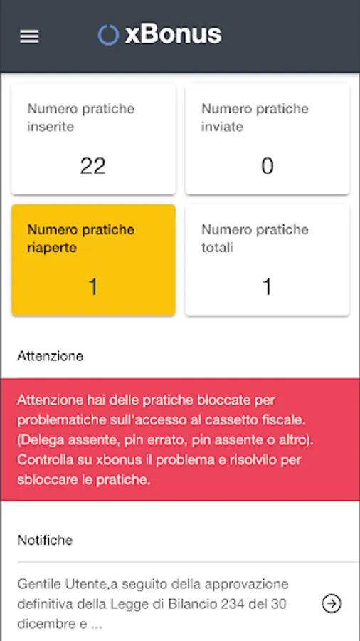 The xBonus App allows you to receive platform notifications, monitor the status of the files and attach geo-referenced photos to the files