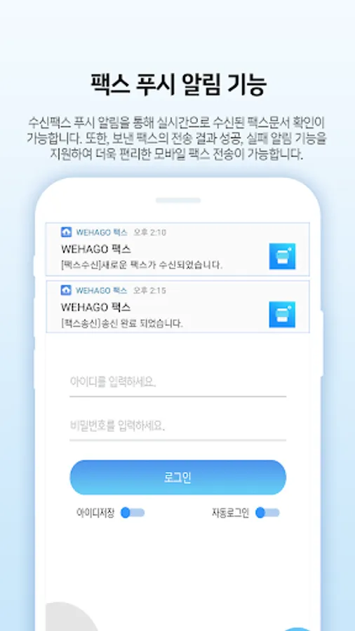 ※ You can use it after signing up as a member on the WEHAGO PC Web (www.wehago.com). Use the Duzon WEHAGO fax mobile app conveniently anytime, anywhere!