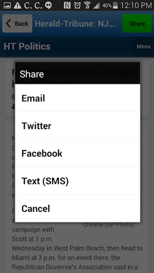 The "two tap" social sharing feature makes our app the easiest way to share Florida political news content from your Android device. While most mobile apps require three taps to email or share an article, the Sayfie Review app lets you quickly share breaking news with only two taps.