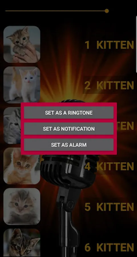 How do you feel when you see small kittens that are playing and meowing? Does it make you feel nice? If yes, then sounds of cats is perfect application for you. Sounds of cats provides you with a collection of different sounds divided into a categories for angry, cute, funny, meow, purring cats, and lovely small kittens. All sounds are realistic, and every sound is amazing and amusing. It's a great application if you like kittens, and it's also suitable for playing with your pets at home. See how your pets are reacting when they hear sounds of angry cat. Each sound can be used as a ringtone, or notification and alarm sound, so you can wake up in the morning with the sound of your favorite pet. Sounds of cats offers you one of the biggest collection of cat sounds on the market with more than 150 quality sounds, available for your enjoyment. This app is perfect for entertainment, so don't hesitate, lay back in your favorite chair, download app for free, and let the fun begin.