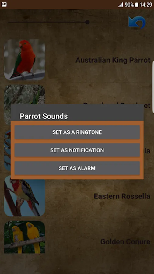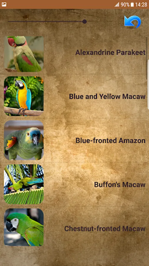 Parrots learn to vocalize by listening and then repeating it back. That is why sounds of parrots are the most interesting sounds among all bird sounds. People adore parrots that can repeat human words, and this is what makes them one of the most favorite exotic animal that you can keep in your home. An African gray parrot named Alex could count and knew colors and shapes. We don't have Alex's sound, but we got all the sounds from the most popular parrot species. From small lovebirds, middle sized parots like rosellas and conures till big parrots like cockatoo, parakeets and amazon. Download and explore all of them. Feel free to comment, tell us what sounds would you like to see in updates, and if you are satissfied with ths app reward her with 5 star rating to encourage us in creating more beautiful android applications