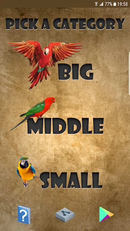 Impresive graphic design and beautiful, realistic sounds of parrots, from wet jungles, wild forests, to the home from their prowd owners. Categorized in 3 main categories: small, middle and large parrots.