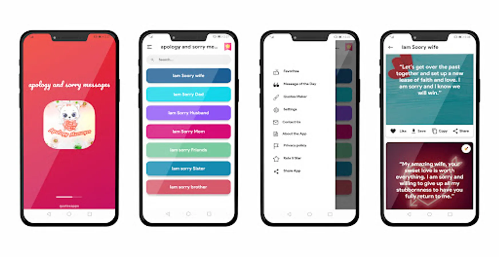 Sorry and apology love Messages Status & Quotes free android app is the collection of sorry messages quotes and proverbs with touching apology messages of sincere feelings. It is the great way to let them know your thoughts and apologize to your husband wife sweetheart loved ones family members or anyone else with touching sorry messages and apology quotes with beautiful and cute ecard greetings and give words to your sweetheart with these Greeting Cards.