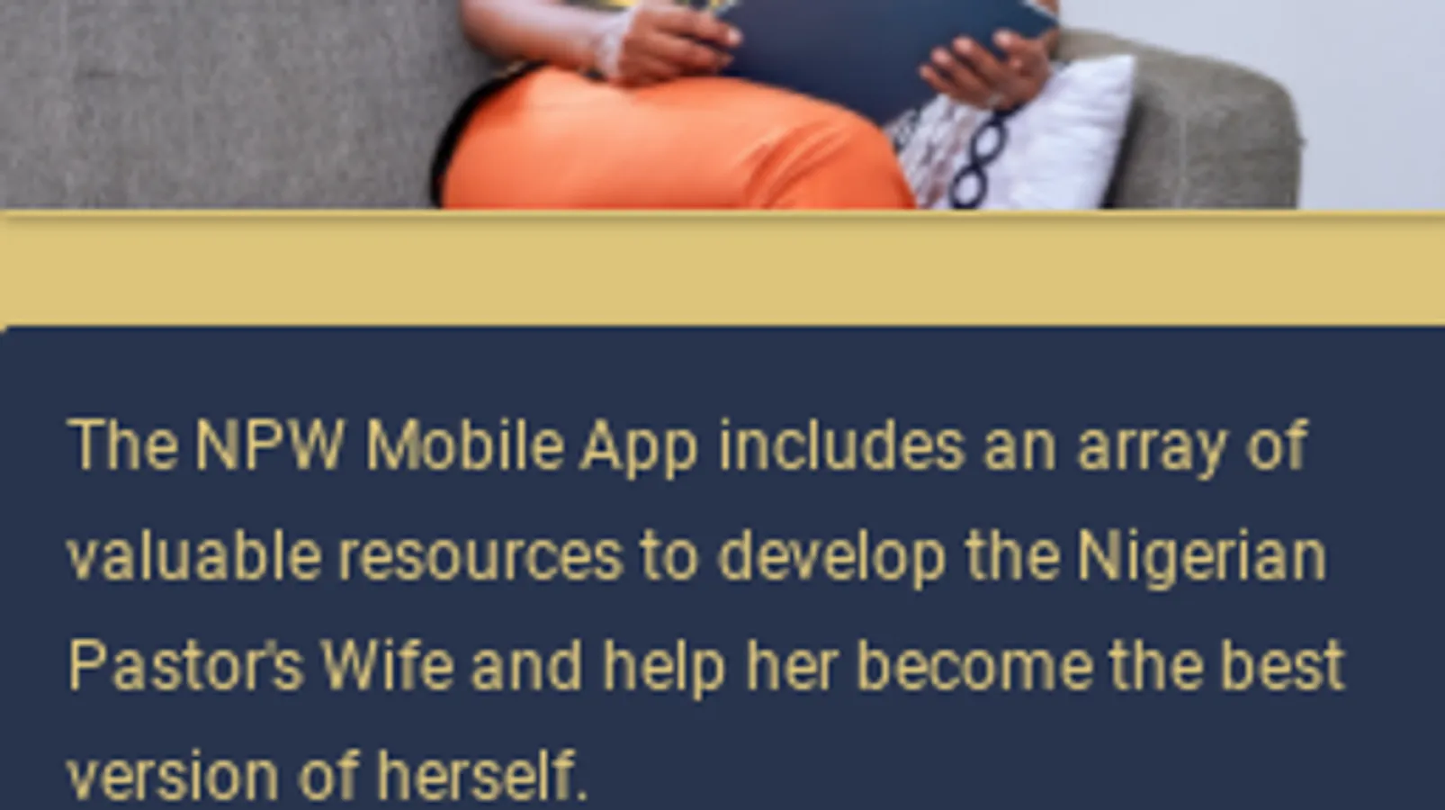 The NPW Mobile App includes an array of valuable resources to develop the Nigerian Pastor's Wife and help her become the best version of herself.