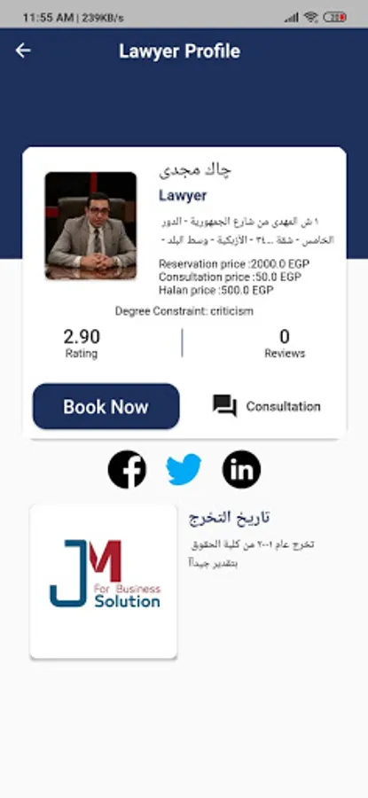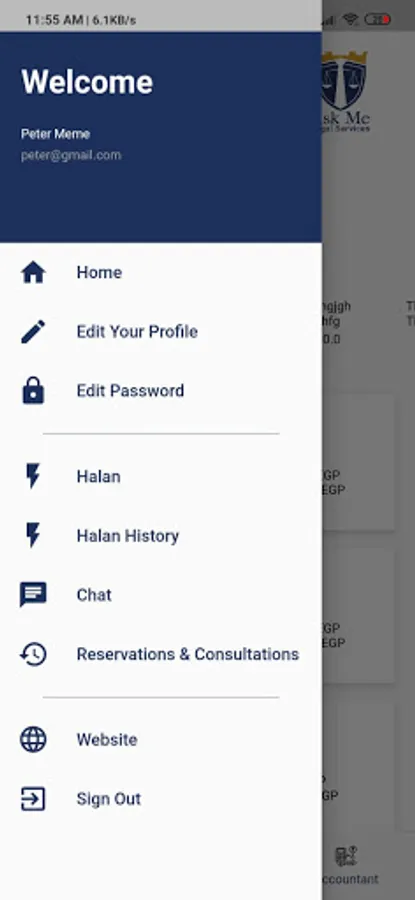 A program to facilitate the connection between a user and a lawyer or an accountant, to get answers to their questions without having to take appointments and waiting for a long time. Users can book for Halan service to ask lawyers for immediate help anywhere & anytime. They can connect together easily with a chatbot too.