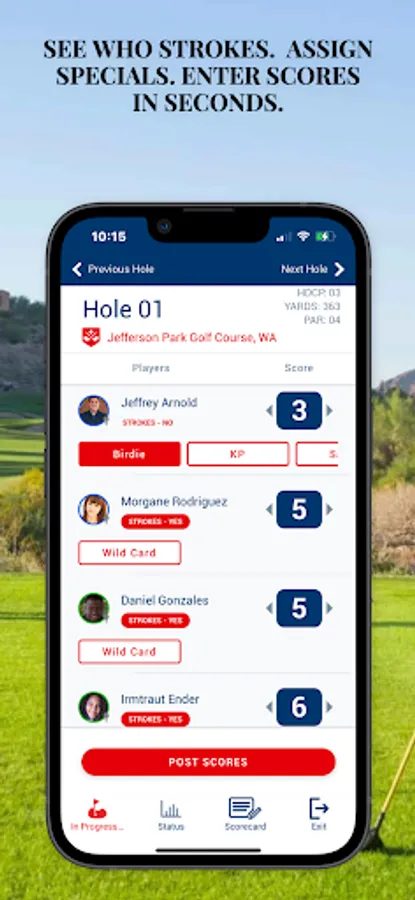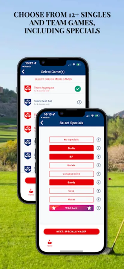o Play both game formats simultaneously (ie. team best ball, individual skins, and specials)