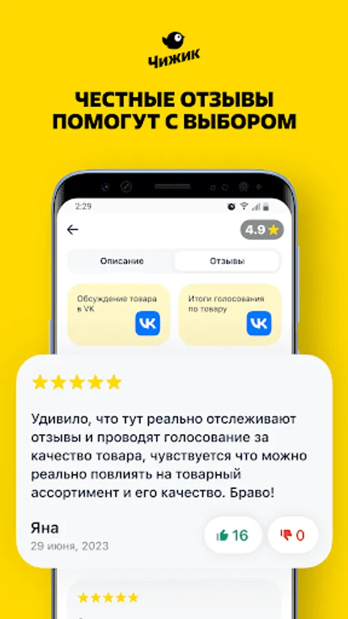 Download the Chizhik app and leave feedback on our products, so you will help Chizhik make quality products. Each review is a control of suppliers and manufacturers, the more such controllers Chizhik has, the more benefit it will be for all our customers.
