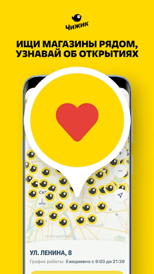Come shopping at Chizhik grocery stores. After all, we already have more than 500 stores in Moscow, the Moscow region, Tver, Tula, Vladimir, Perm, Chelyabinsk, Yekaterinburg, Ufa, Voronezh, Nizhny Novgorod and other cities.