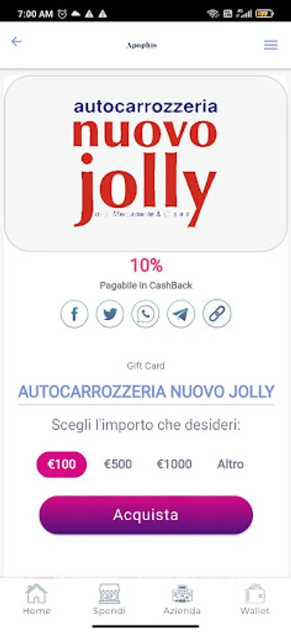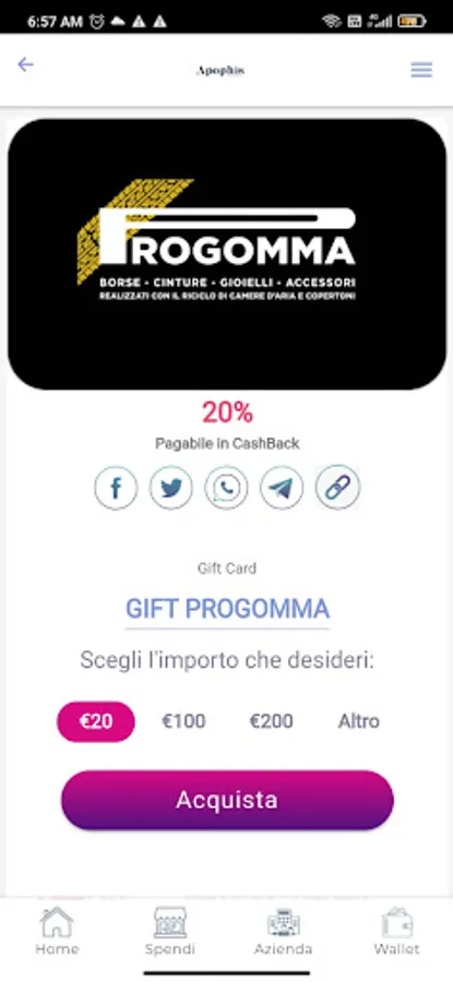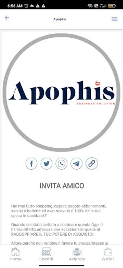 The software offers each company the opportunity to publish products and promotions on its marketplace and to become part of the main Apophis Cashback Marketplace whose products are sponsored and published on the personal social networks of each of our promoters and influencers. The system is based on word of mouth which allows to expand the network of acquaintances, creating direct visibility for companies.